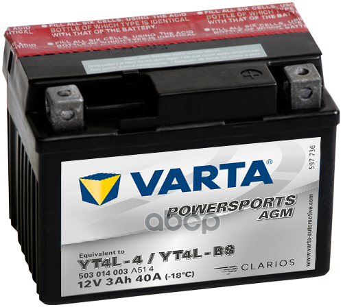 СохранитьАккумуляторная Батарея Powersports Agm [12v 3ah 40a B00] Varta арт. 503014003 интересное: