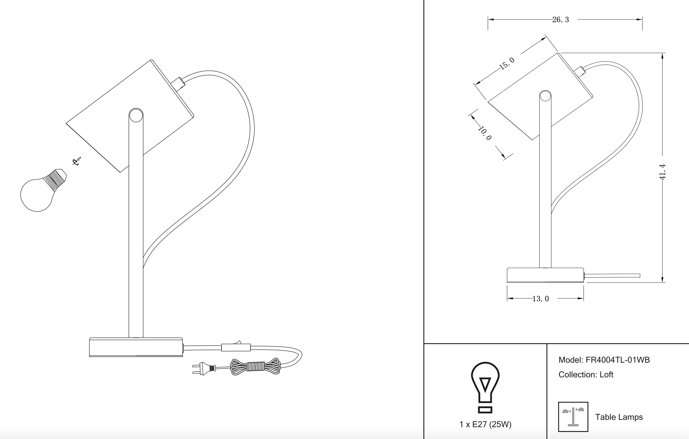 Настольный светильник Elori Freya FR4004TL-01WB