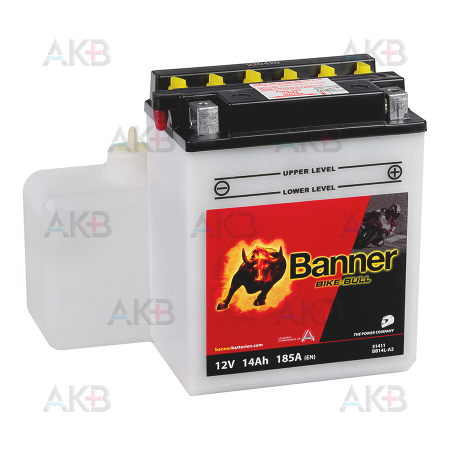 Купить АКБ мото 14 А/часа BANNER BIKE Bull-51412 12В Ток-185А 134/89/166мм Прямой YB14-A2