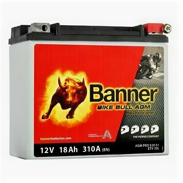 СохранитьАккумулятор Banner Bike Bull AGM PRO 52001 (ETX20L, YTX20L-BS) интересное: