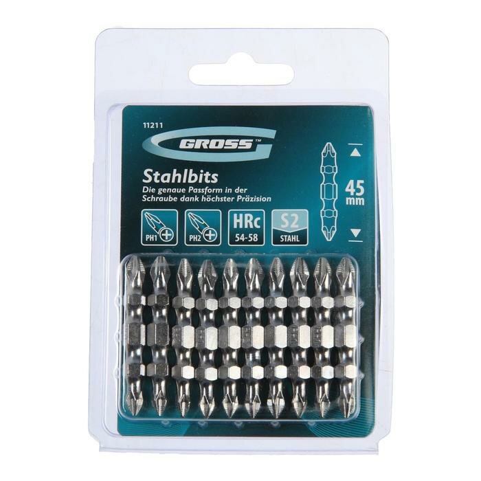 Gross Набор бит двухстор. GROSS, PH2-PH1 х 45 мм, сталь S2, 10 шт. интересное: