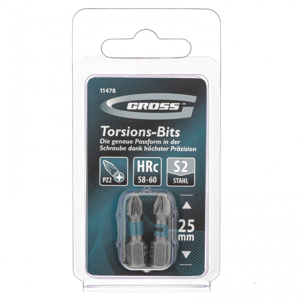 Купить GROSS Бита торсионная PZ2 x 25 мм, для ударных шуруповертов, 2 шт. Gross