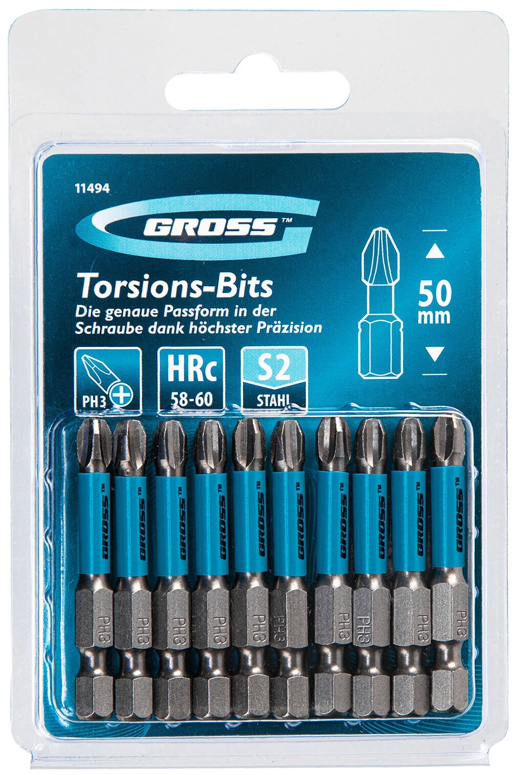 Набор бит торсионных Gross PH3x50 мм для ударных шуруповертов, 10 шт 11494
