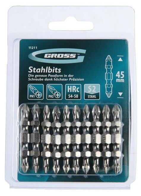 Набор бит двухстор. GROSS, PH2-PH1 х 45 мм, сталь S2, 10 шт. интересное: