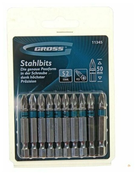 Набор бит РZ2х50 Gross, сталь S2 (набор 10шт) Gross 1160163 . интересное: