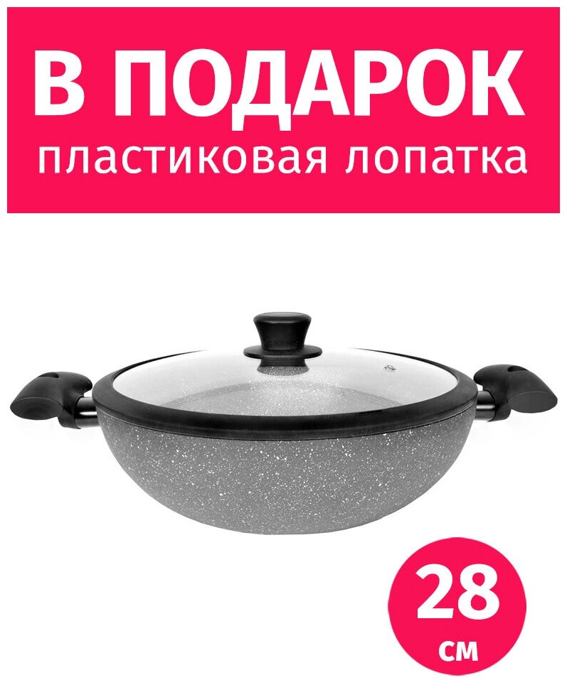 Сковорода вок сотейник 28см TIMA Granito Forte с крышкой, каменное покрытие R3sistek, Италия