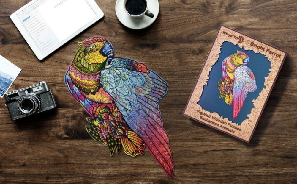 Wood Trick Деревянный пазл Яркий Попугай интересное:
