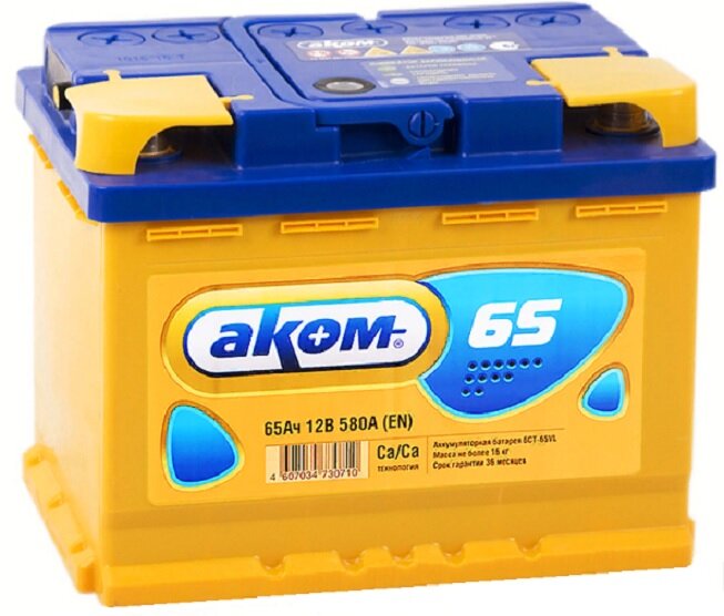 Аккумулятор автомобильный АКОМ (Akom) 65 А/ч 600 А прям. пол. Росс. авто (245х177х190) интересное: