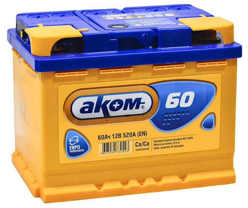 Купить Аккумулятор автомобильный АКОМ (Akom) 60 А/ч 540 А обр. пол. Евро авто (245х177х190)
