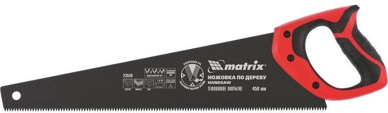 Ножовка MATRIX 23550 по дереву 450мм 7-8 tpi зуб-3d каленый зуб тефл.покр.полотна 2-х комп..рук-ка