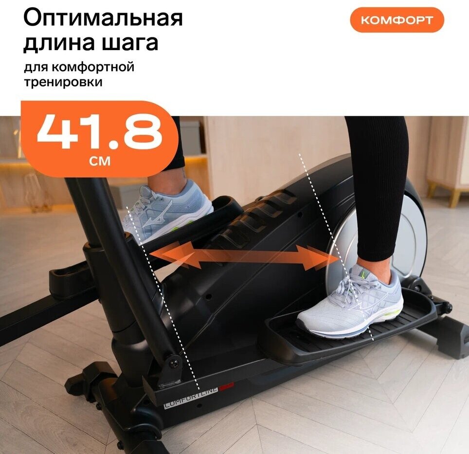 | Отзыв: | Один из самых дешевых эллипсов с длиной шага больше 40 см. Меньше брать не стоит. Тренироваться комфортно. Нагрузки идет не только на ноги, но и одновременно тренируются руки. Q-фактор (расстояние между педалями) небольшой и составляет 19 см. Обладает удобной консолью, регулировка осуществляется в основном колесиком. На других обычно все делается через кнопки. Собран качественно. |