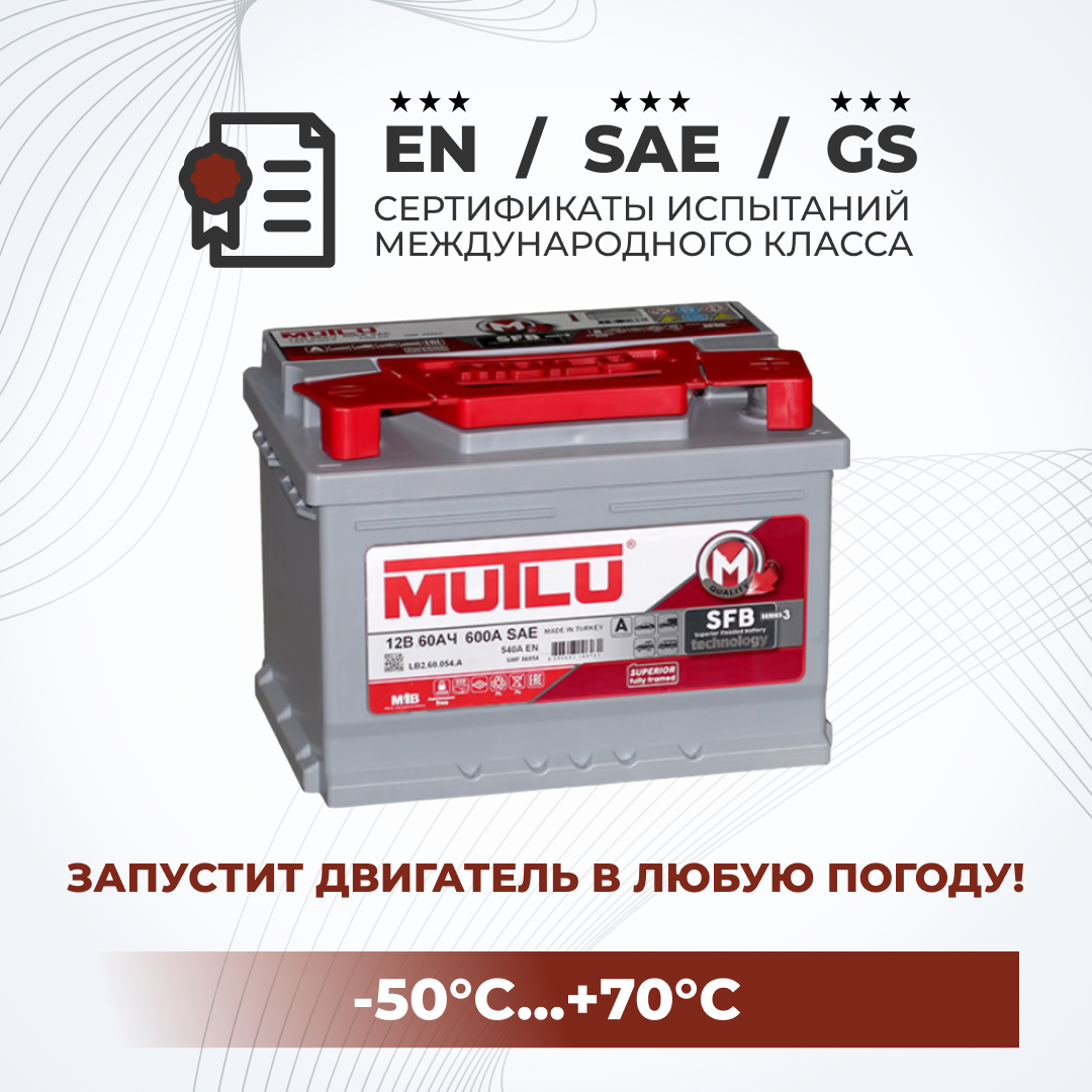 Ниже Вы можете прочитать отзывы на Аккумулятор автомобильный Mutlu 60 А/ч 540 А обр. пол. низкий 56054 Евро авто (242x175x175) LB2.60.054.A, ознакомится с подробными характеристиками, посмотреть интересные обзоры и фотографии на Аккумулятор автомобильный Mutlu 60 А/ч 540 А обр. пол. низкий 56054 Евро авто (242x175x175) LB2.60.054.A.