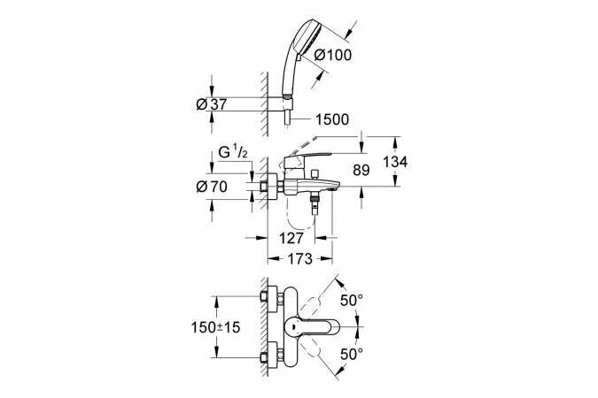Смеситель для ванны Grohe Eurostyle Cosmopolitan с ручным душем Grohe New Tempesta Cosmo II