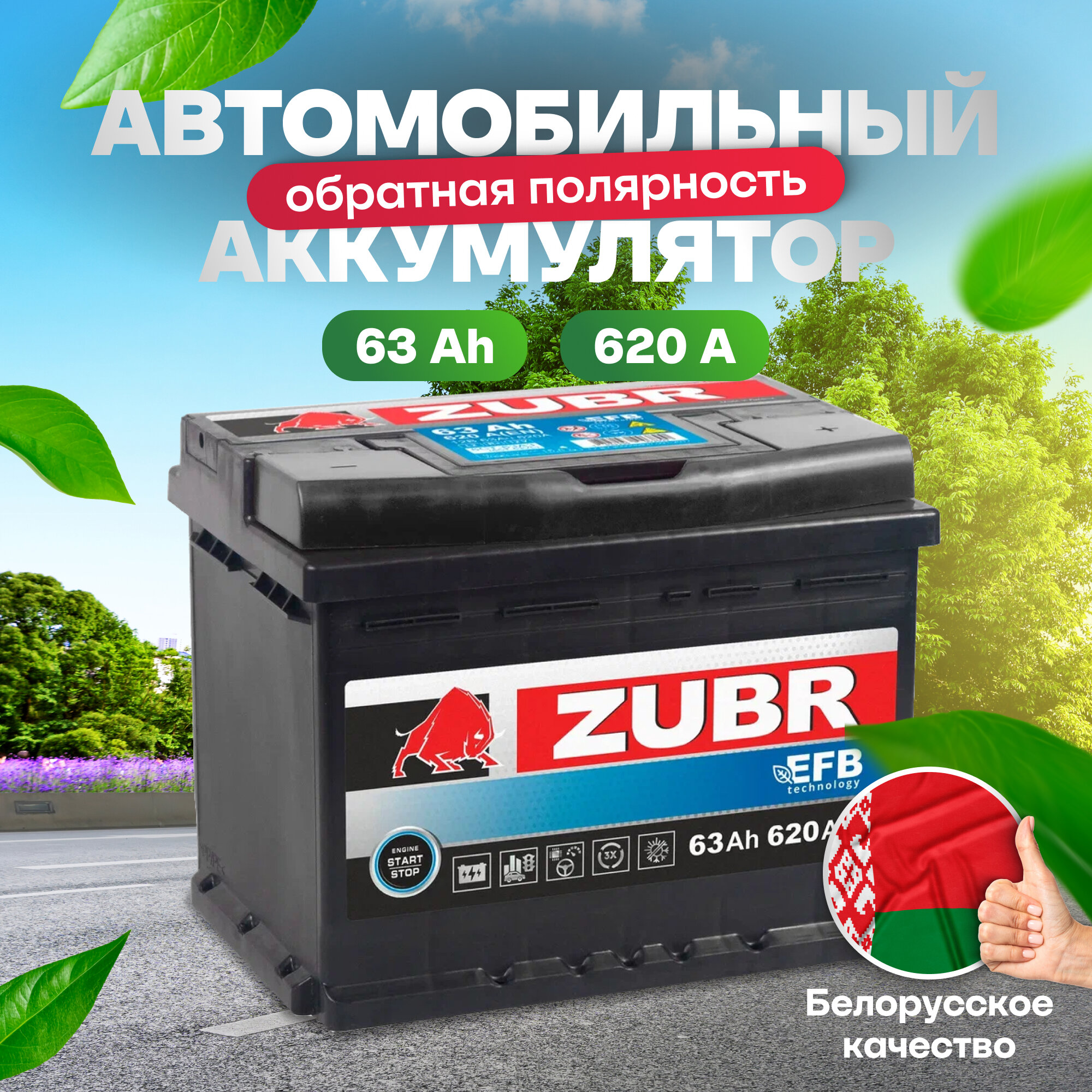 Аккумулятор автомобильный Zubr EFB 63 А/ч 620 А обр. пол. Евро авто (242х175х190) интересное: