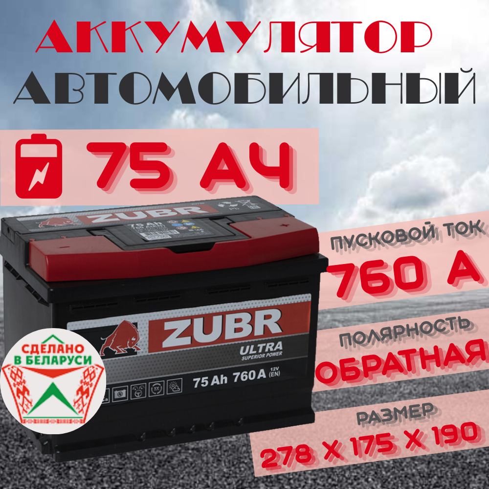 Купить Аккумулятор ZUBR Ultra 75 Ач обратная полярность
