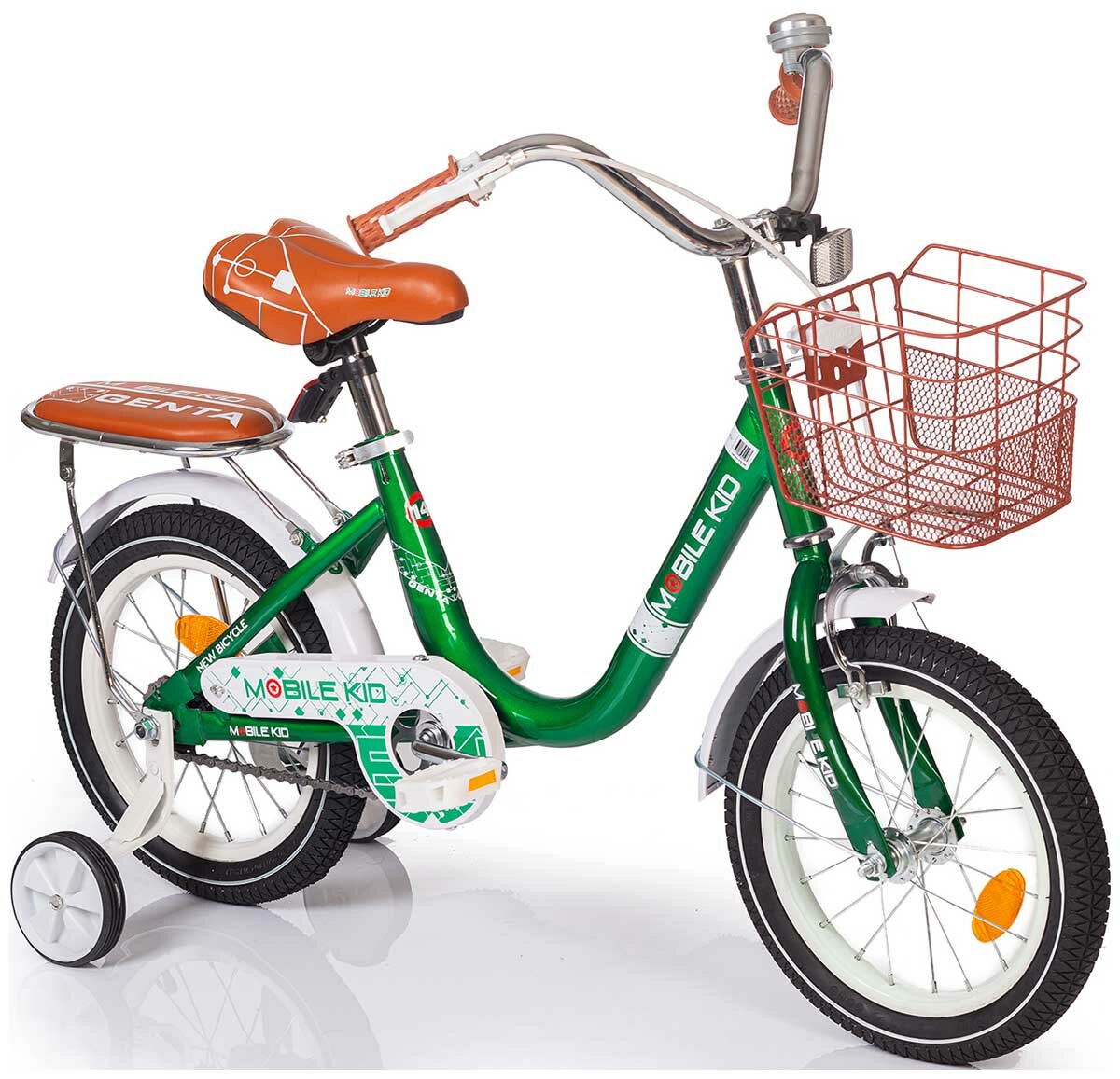 Велосипед детский со съемными тренировочными колесами Mobile Kid Genta, 14 дюймов, зеленый