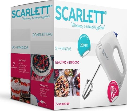 Ниже Вы можете прочитать отзывы на Миксер Scarlett SC-HM40S03 белый, ознакомится с подробными характеристиками, посмотреть интересные обзоры и фотографии на Миксер Scarlett SC-HM40S03 белый.