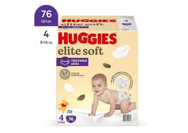 Трусики-подгузники Huggies Elite Soft 4 (9-14кг), 76 шт.
