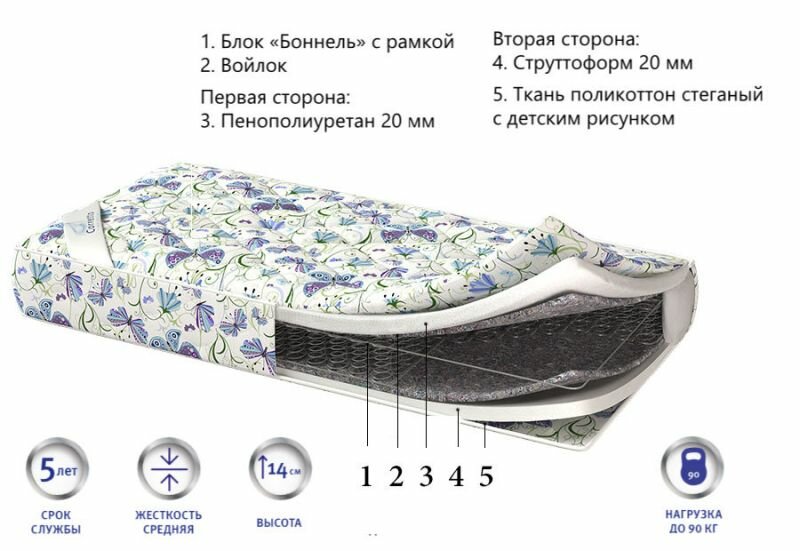 | Наполнитель | комбинированный (пенополиуретан + кокосовая плита) |