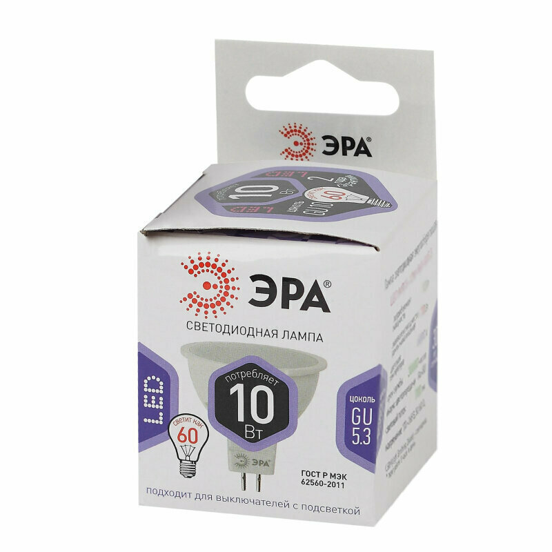 Лампочка светодиодная ЭРА STD LED MR16-10W-860-GU5.3 GU5.3 10ВТ софит холодный дневной свет