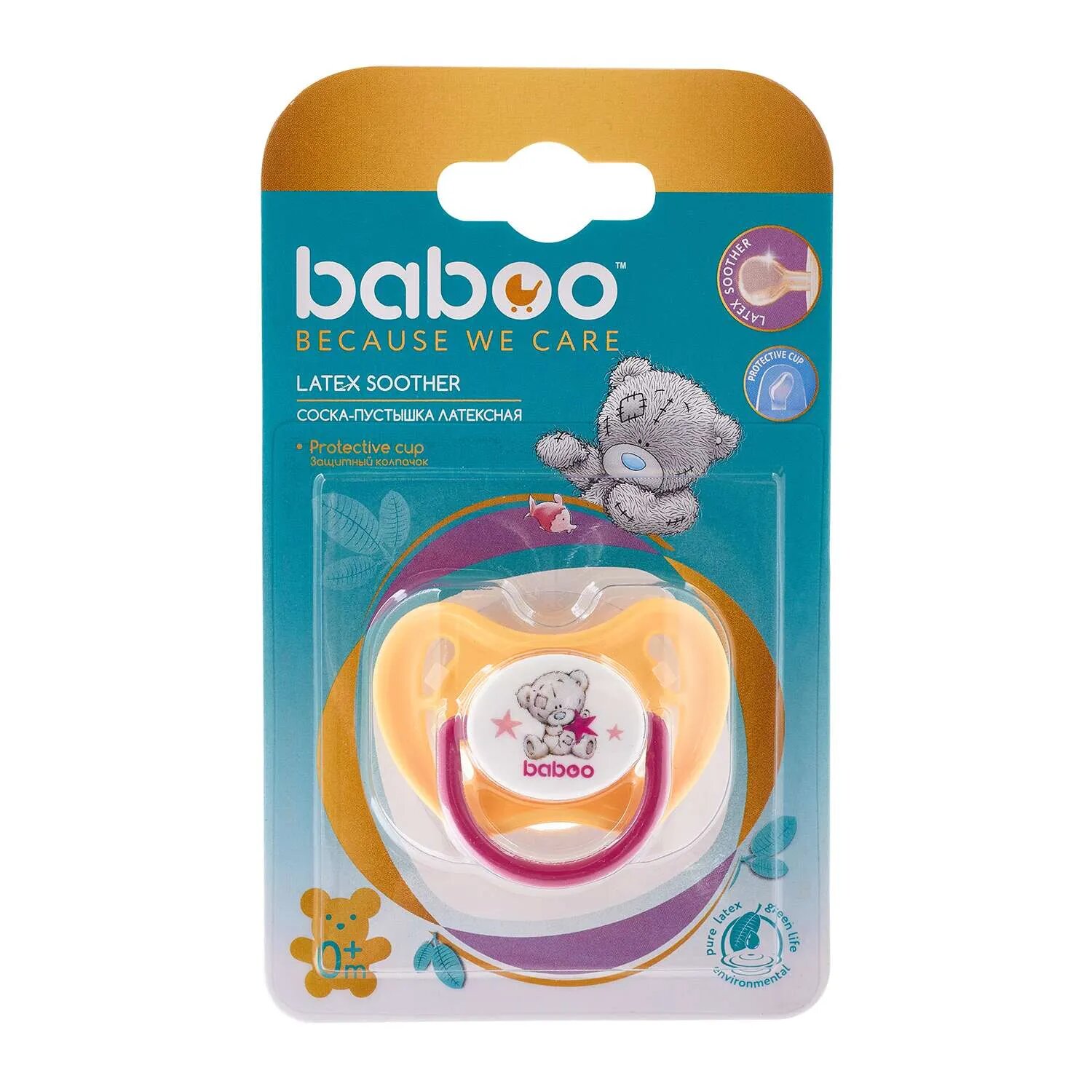 Купить Пустышка Baboo круглая латексная Me to You 0+ мес. Оранжевый