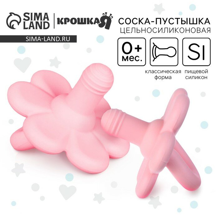 Соска - пустышка цельносиликоновая классическая «Цветочек», от 0 мес., цвет розовый
