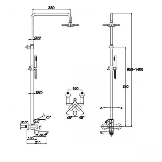 | Особенности | S-образные эксцентрики / аэратор / держатель душевой лейки / регулируемый верхний душ / поворотный излив |