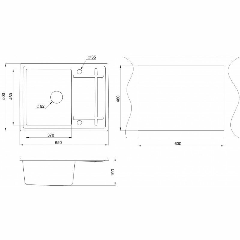 Кухонная мойка кварцевая Granula GR-6501 прямоугольная с крылом, врезная, чаша 375x450, цвет черный (6501bl)