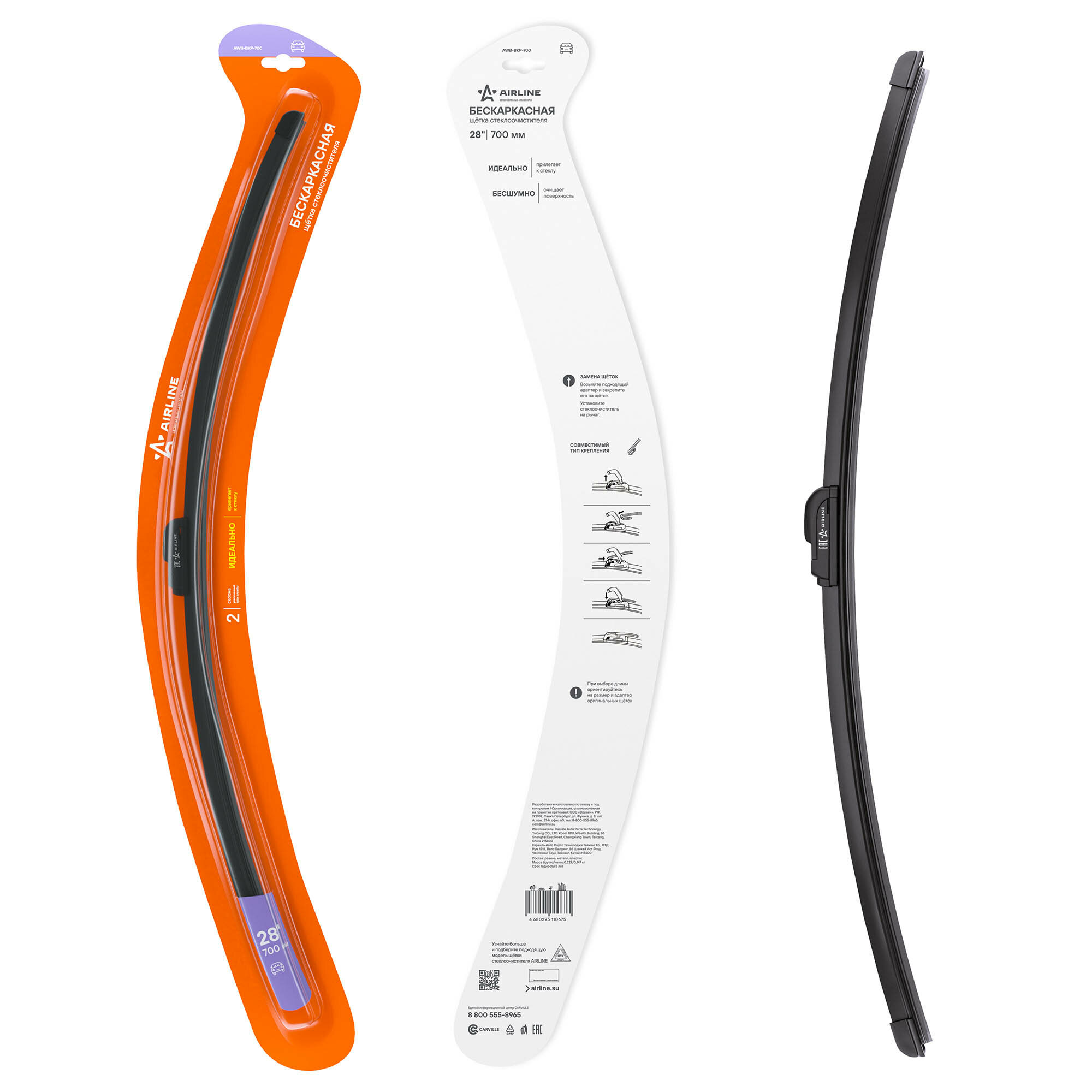 Купить Щетка стеклоочистителя 700мм (28") бескаркасная, 1 адаптер (hook 9x3) AWB-BKP-700 AIRLINE