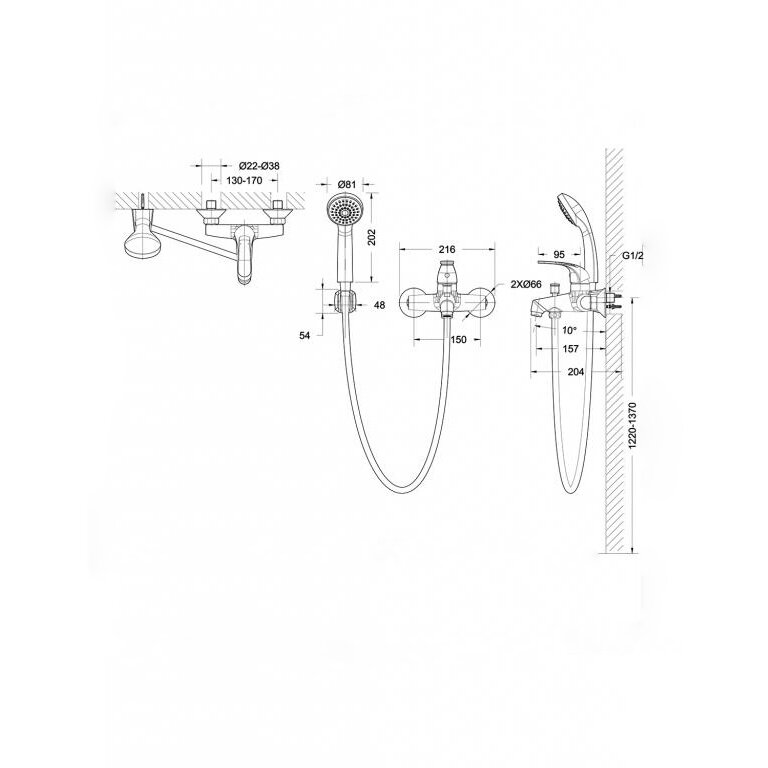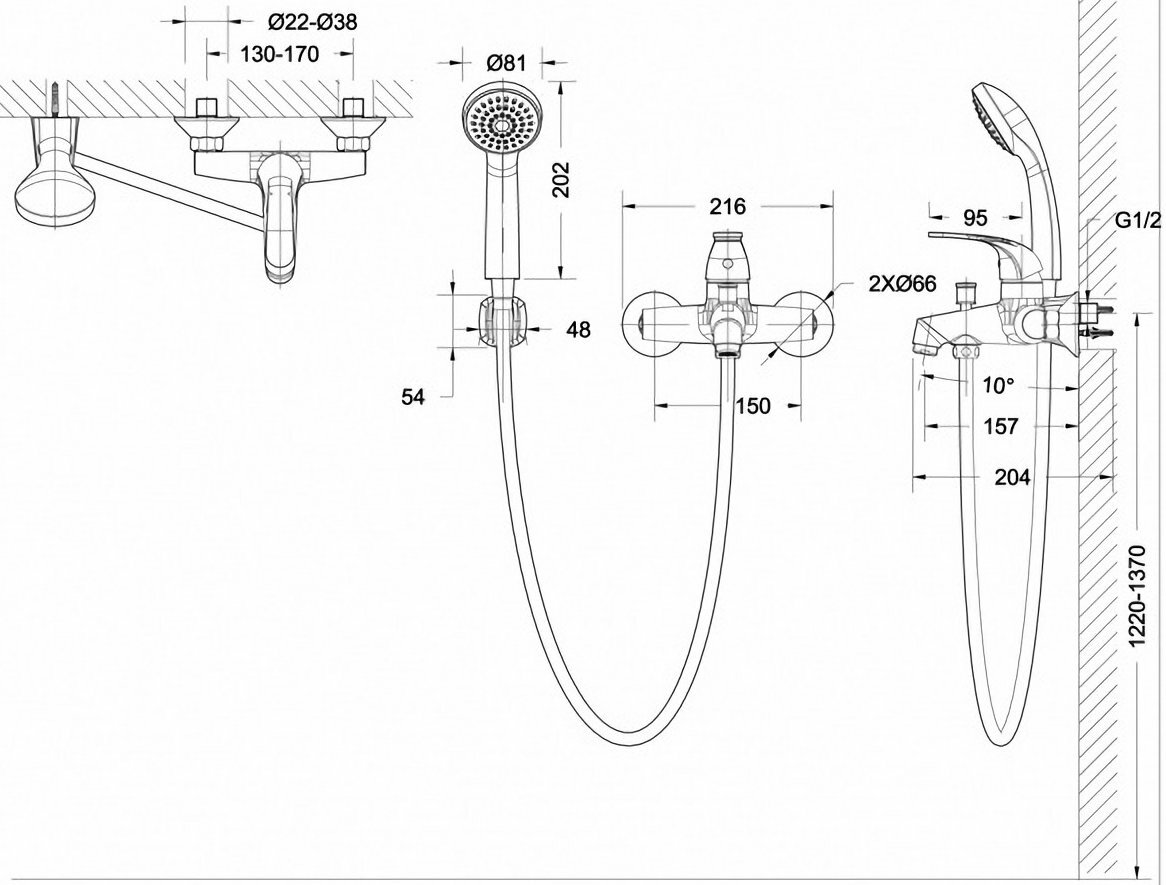 Смеситель для ванны Bravat Fit с лейкой (F6135188CP-B-RUS/F6135188CP RUS)