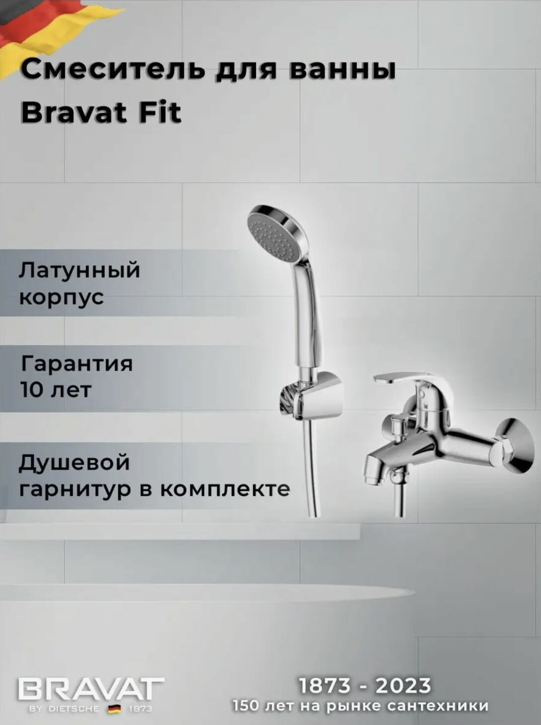 Смеситель Bravat Fit 7 F6135188CP-B-RUS для ванны с душем