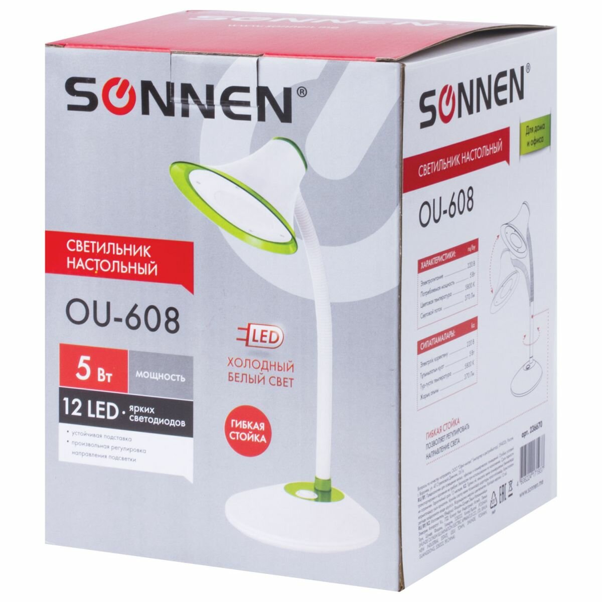 Светильник настольный SONNEN OU - 608, на подставке, светодиодный, 5 Вт, белый/зеленый