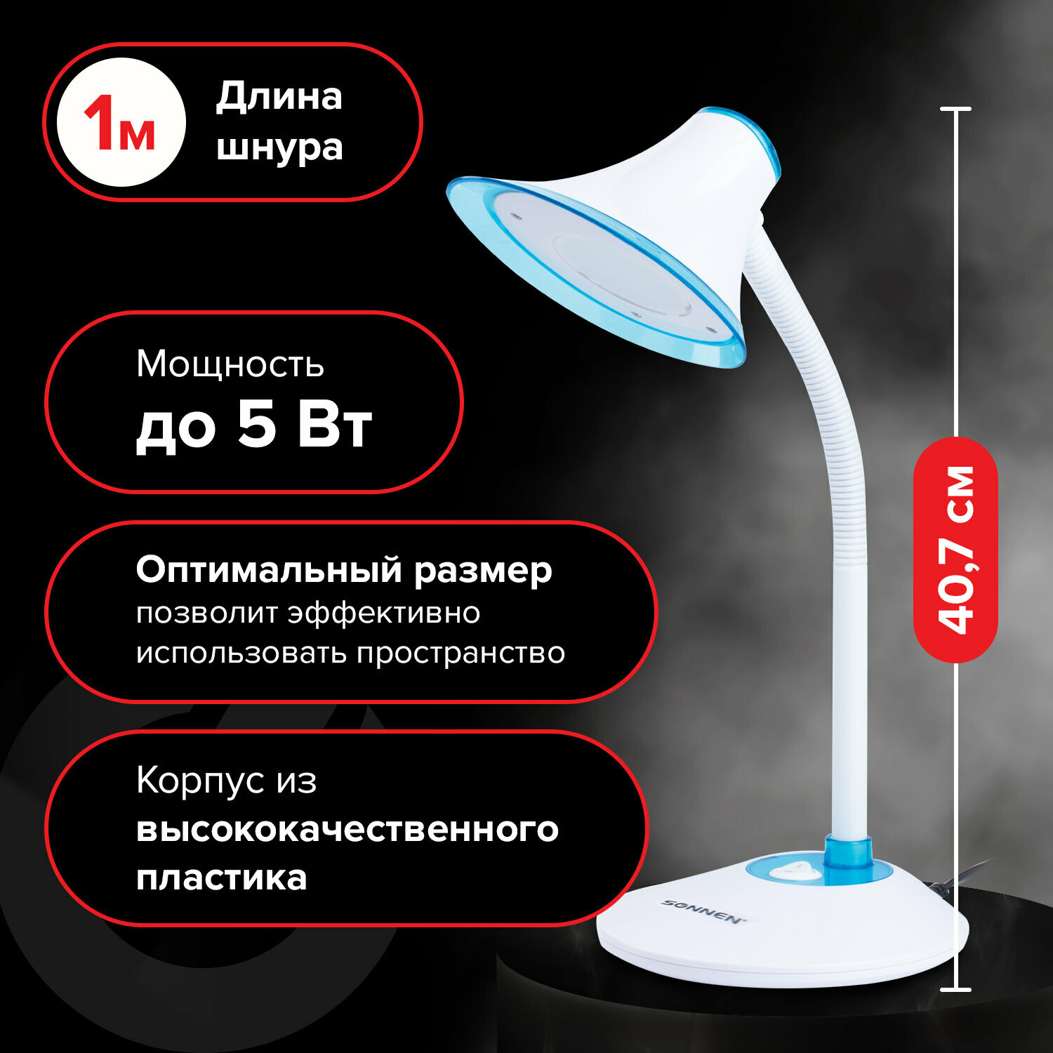 SONNEN Светильник настольный OU-608, на подставке, светодиодный, 5 Вт, белый/синий, 236669