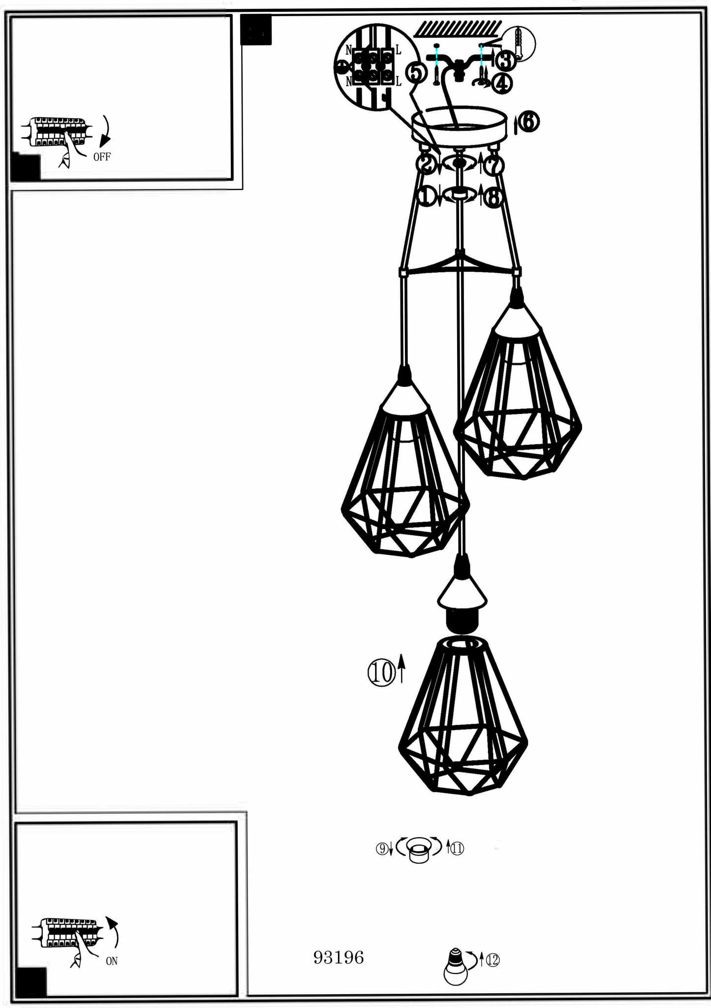 94196 Подвес TARBES, 3x60W (E27), Ø310, H1100, сталь, пластик, медный, черный кабель