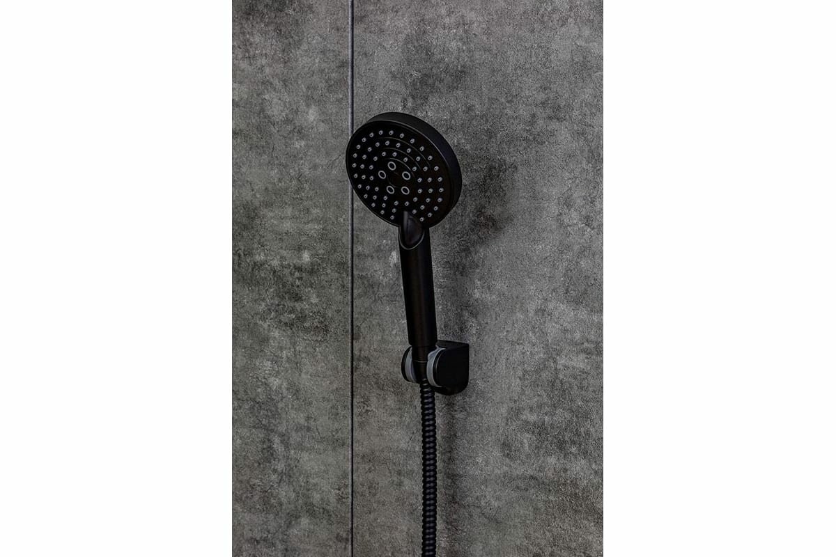 Однозахватный полимерный смеситель для ванны и душа с фиксированным изливом и душевым набором OL02300b черный матовый