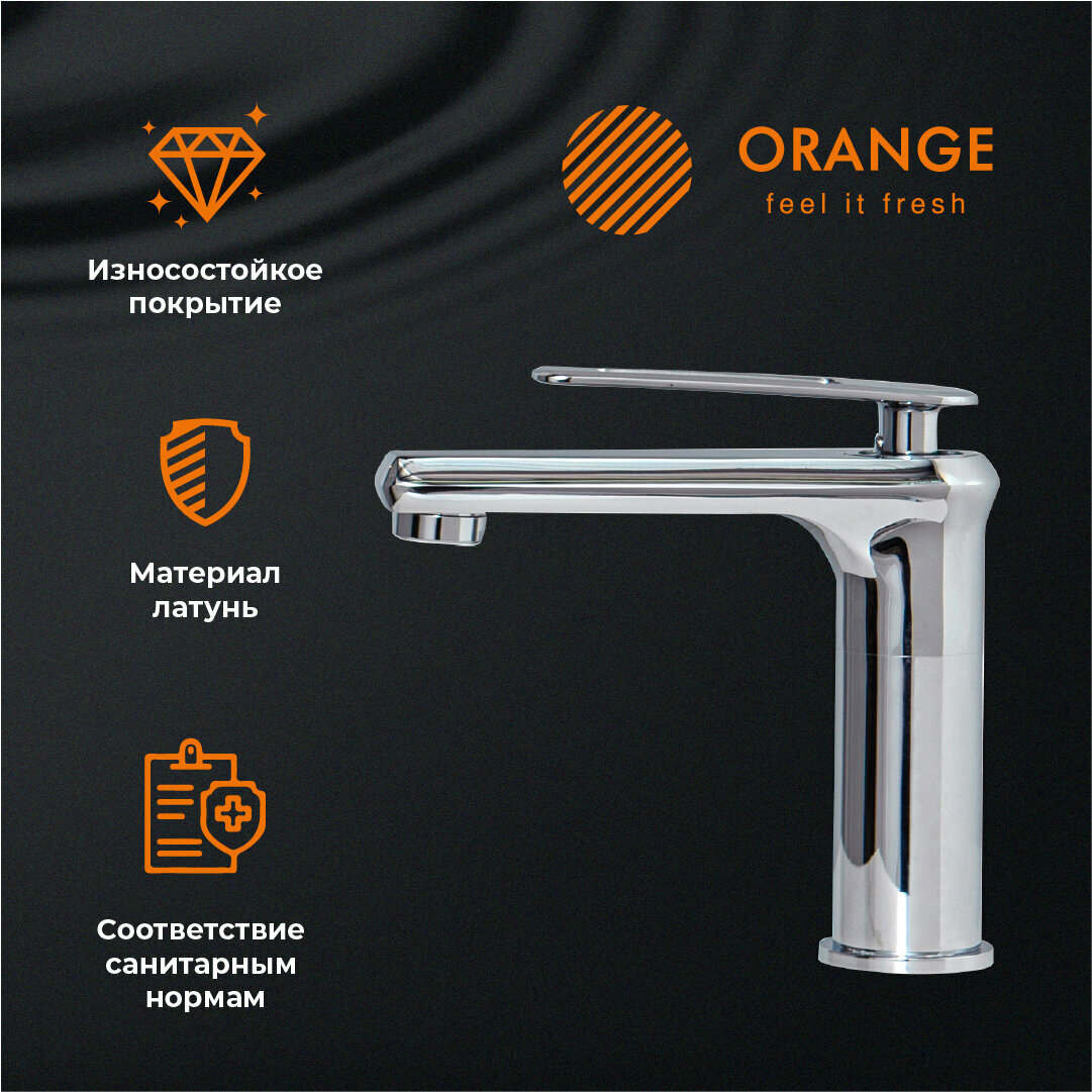 Смеситель для раковины в ванную комнату, латунь, фиксированный излив Orange LINE M06-021cr, хром интересное:
