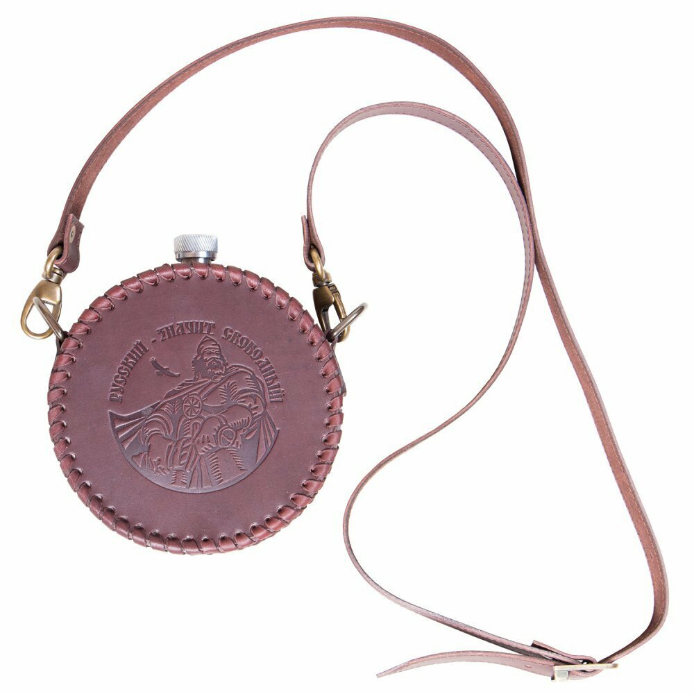 Фляга круглая "Богатырь" в нат. коже, 0.5 л интересное: