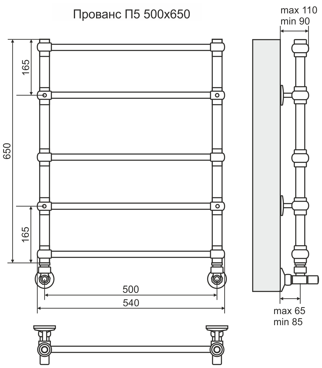 Terminus Полотенцесушитель водяной Terminus Прованс П5 500x650