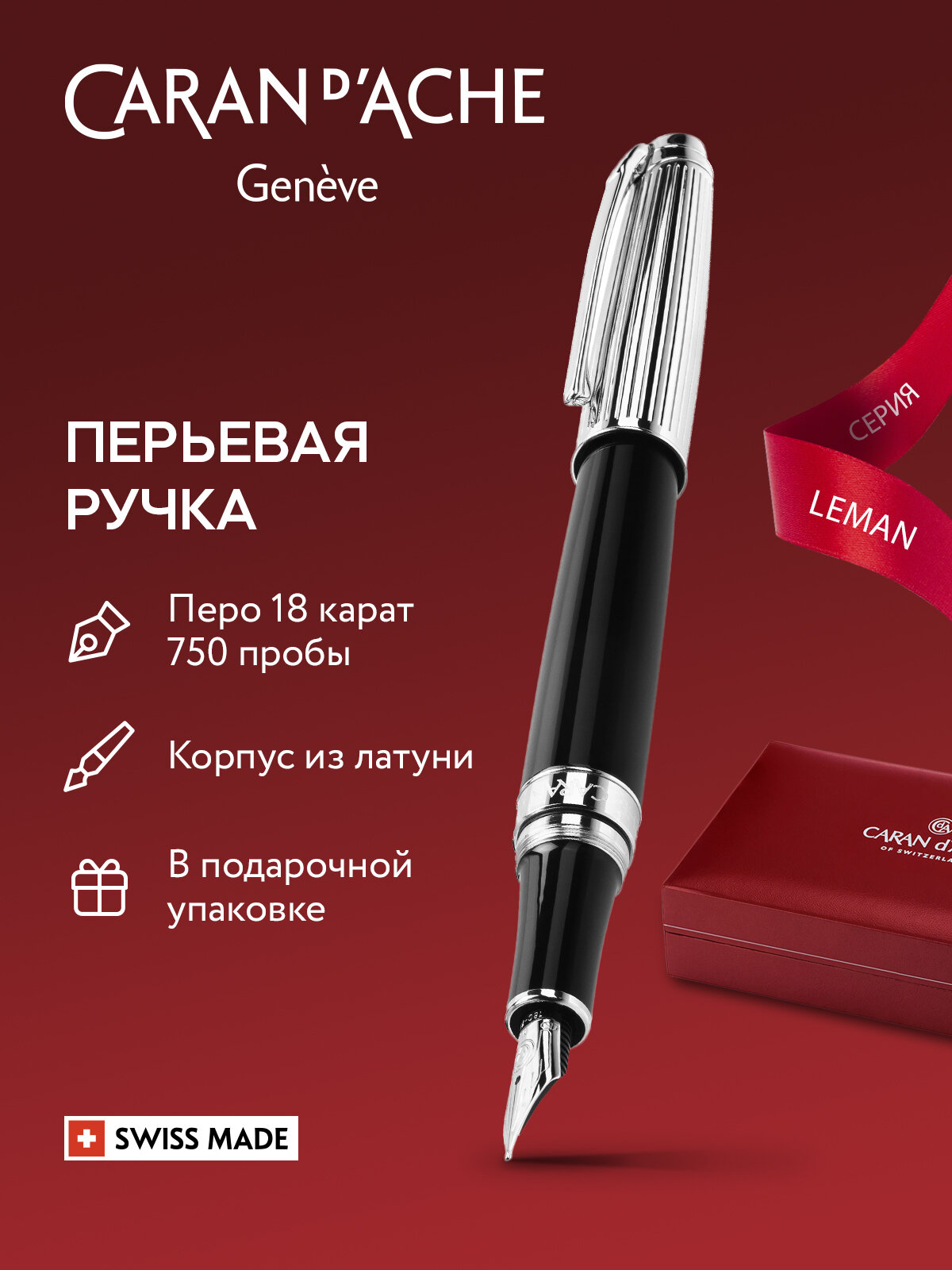 Перьевая ручка CARAN d'ACHE Leman Black Lacquer Rhodium Barrel (CR 4799-289) интересное:
