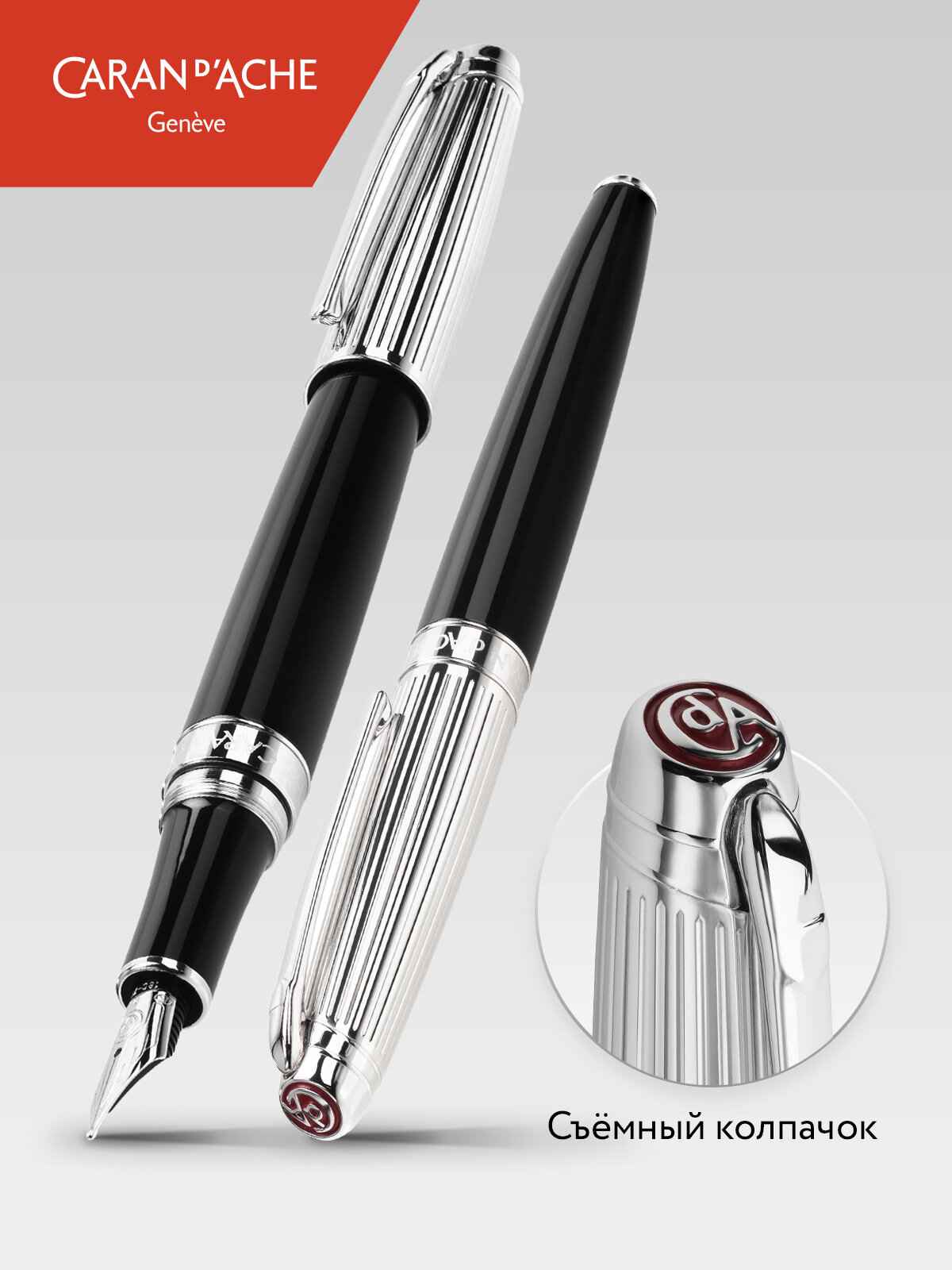 Перьевая ручка CARAN d'ACHE Leman Black Silver Plate (CR 4799-782),(CR 4799-772)
