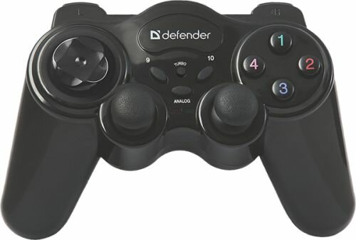 Геймпад DEFENDER Game Master Wireless, беспроводной до 10 м., 10 кнопок функциональных+ 2 аналоговых джойстика+ Analog, питание: 4 батарейки ААА.