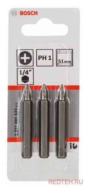 Биты для шуруповертов Bosch PH1 2607001520, XH, 51 мм, 3 шт.
