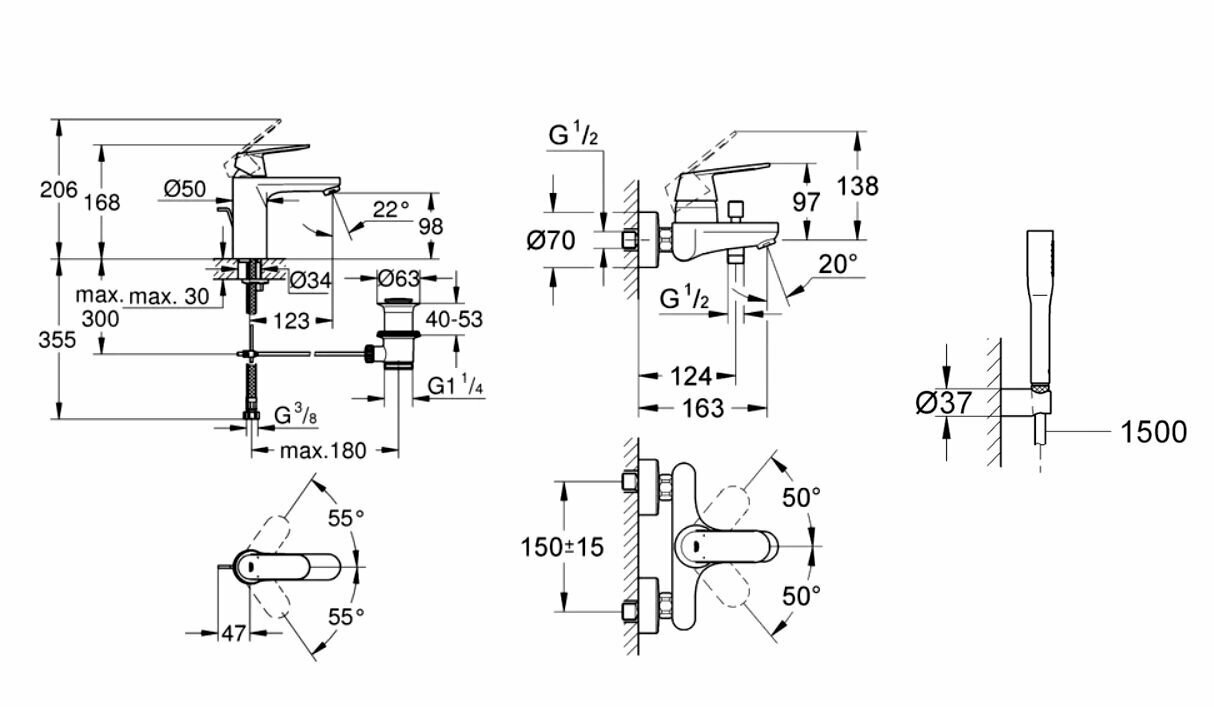 Комплект смесителей для ванны Grohe Eurosmart Cosmopolitan Stik, хром интересное: