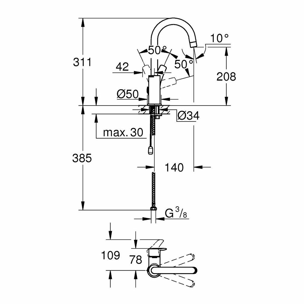 Смеситель для раковины, с цепочкой Grohe Eurosmart 23743003