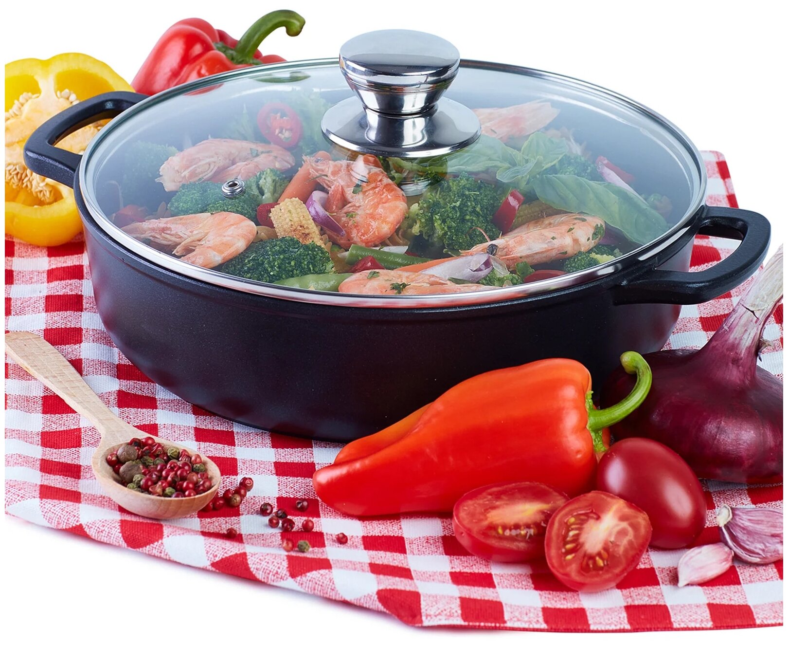 Сковорода-жаровня Традиция Комфорт литая со стеклянной крышкой, с крышкой, диаметр 26 см