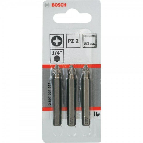 Бита Pz2 3 шт. (хвостовик шестигранный 1/4"; 51 мм; Extra Hart) Bosch 2.607.001.571 интересное: