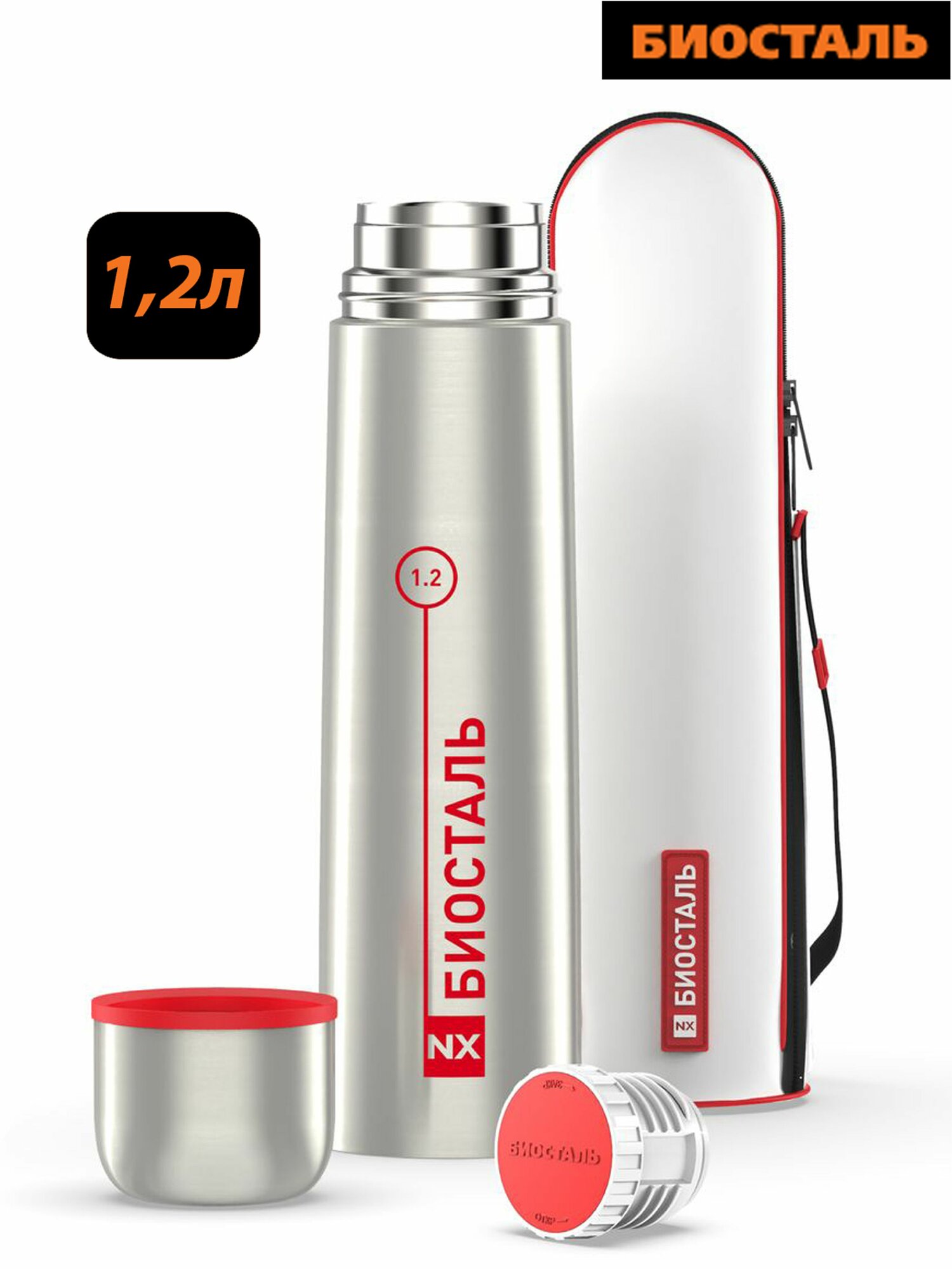 Купить Термос Biostal (1,2 литра) в чехле, стальной