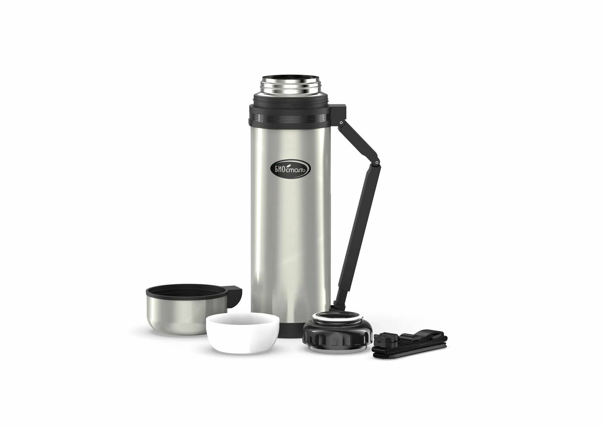 Термос Biostal NG-1000-1 1л,универс.,нерж,ручка,рем. для переноски,крышка-чашка и доп.пласт.чашка