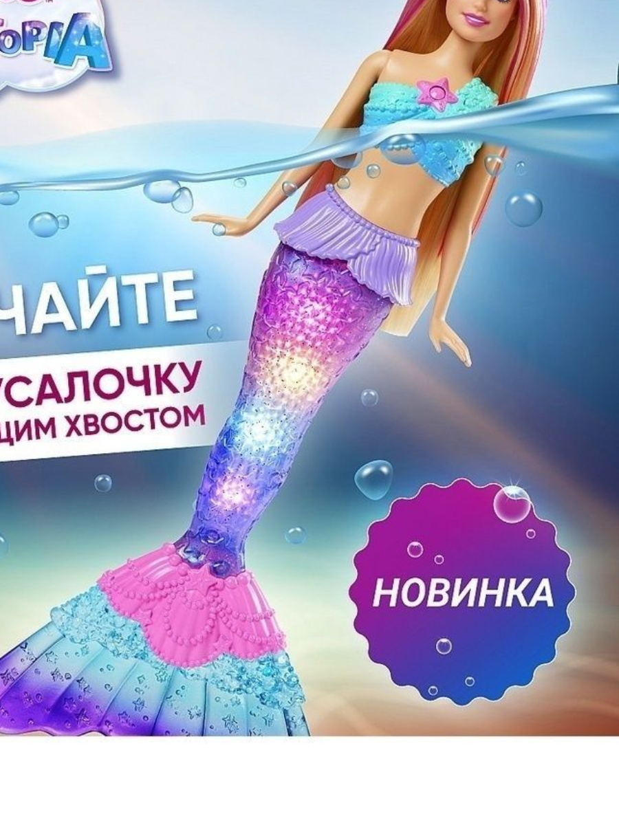 | Плюсы: | Настоящая красивая барби, хвост светится, девочка очень довольна, брали на подарок |