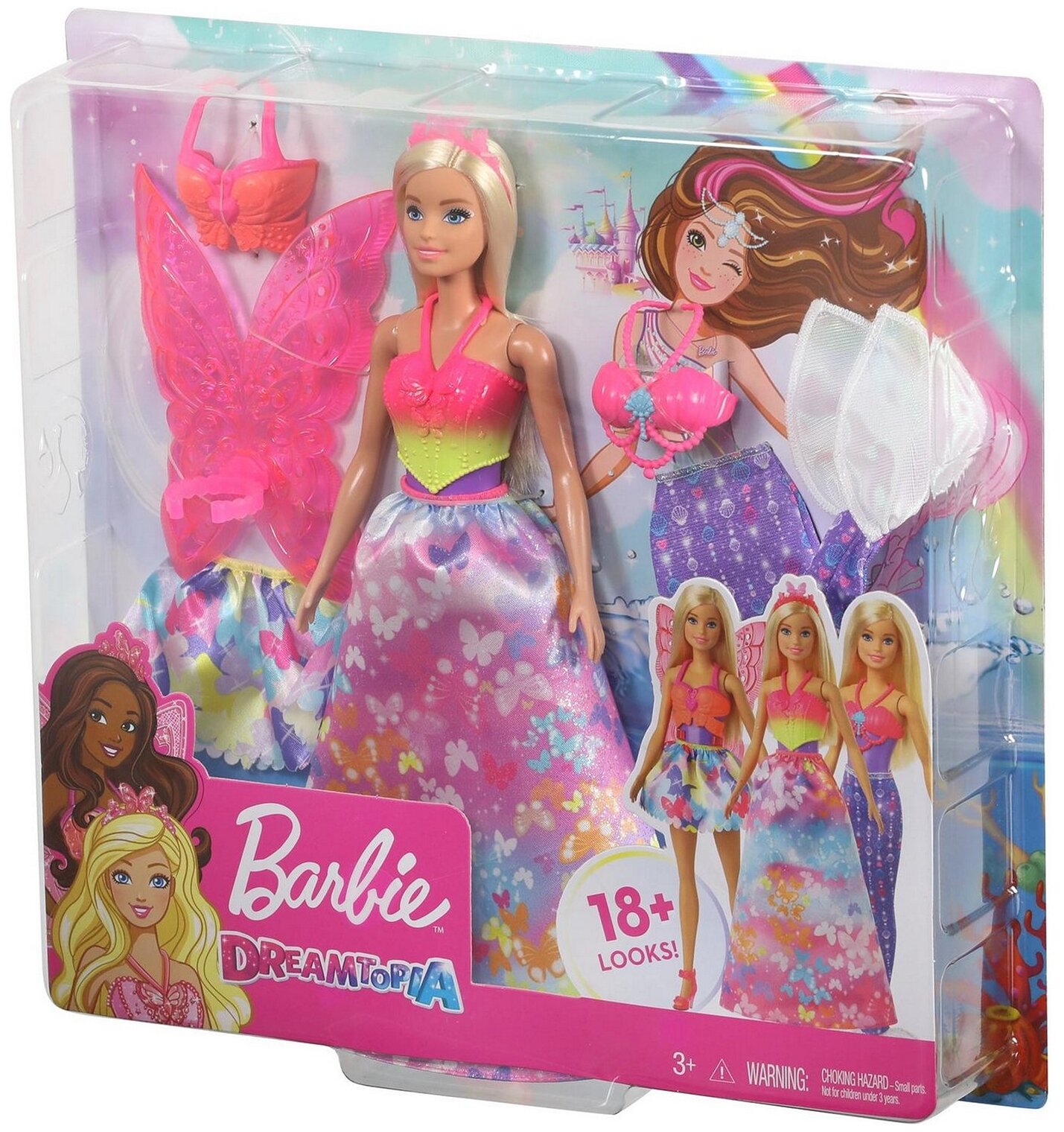 Кукла Barbie Dreamtopia Fantasy Playset 3 в 1 с 3 нарядами и аксессуарами: Фея, Русалочка и Принцесса Игрушка Возраст 3+